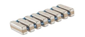 - Mix and match dielectric types, capacitance values, voltages and chip resistors / inductors into a single array.